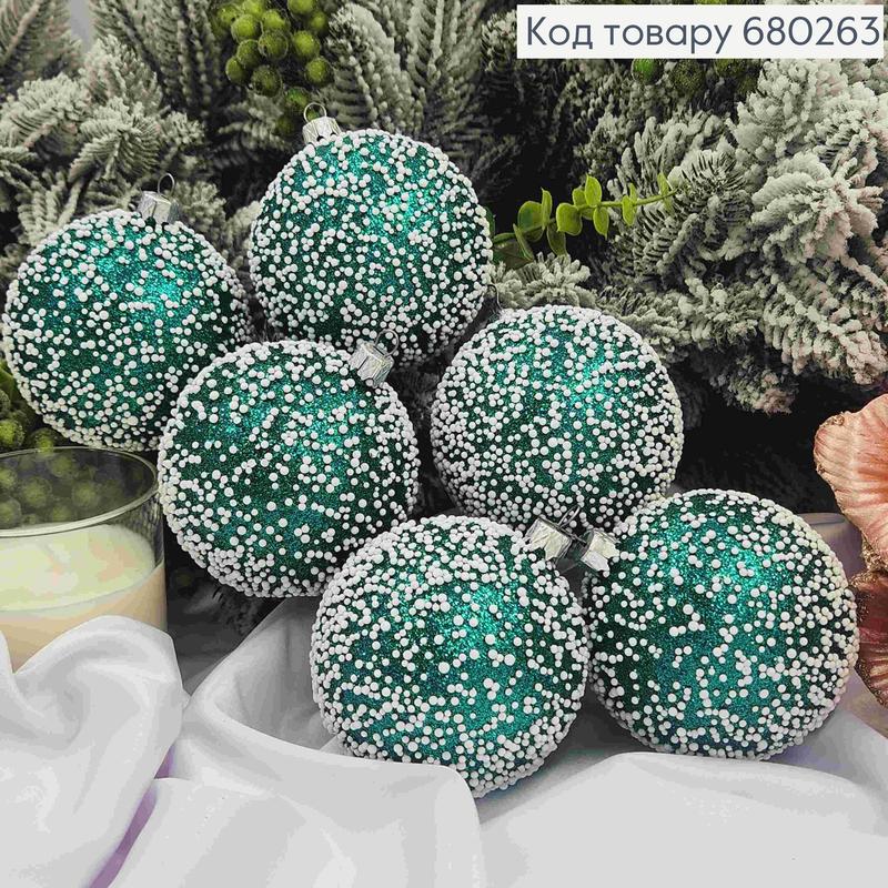 Набор шаров на елку 80мм (6шт) "снегопад", изумрудный цвет, новогодние украшения, пластик,...