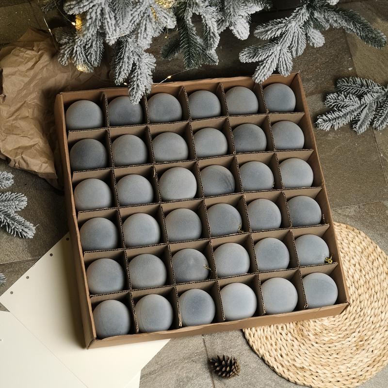 Подарунковий набір ялинкових кульок оксамит 18 шт. нюдовий сірий