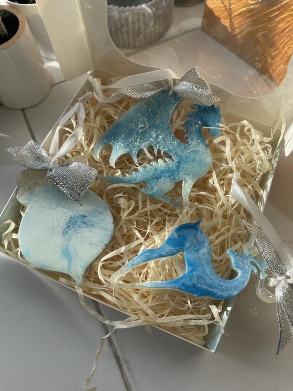Крутой набор на елку ручной работы из эпоксидной смолы. Очень красивый 😻 подойдет также на подарок 🎁