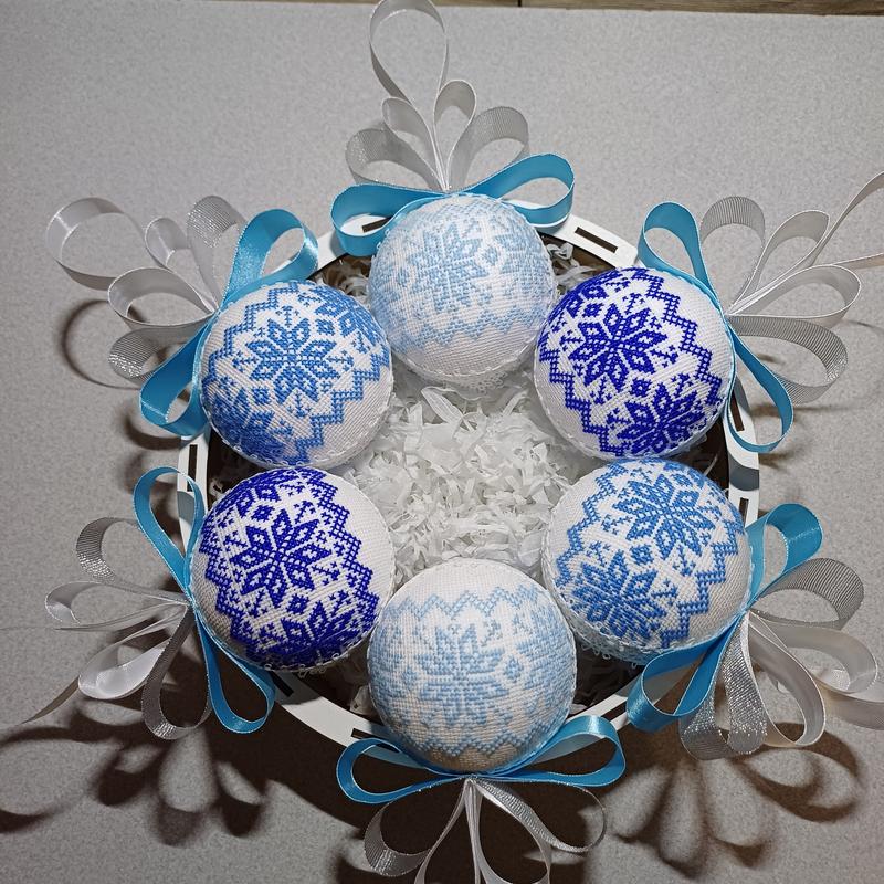 Набор вышитых новогодних игрушек. Односторонняя вышивка. отделаны английским кружевом.Подарочная упаковка в стоимость изделия не входит