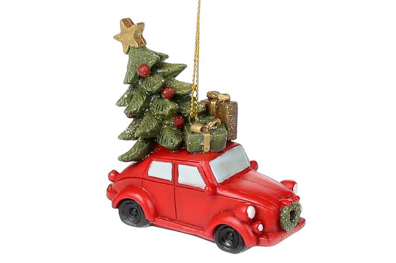 Підвіска на ялинку машинка з ялинкою , 7 см