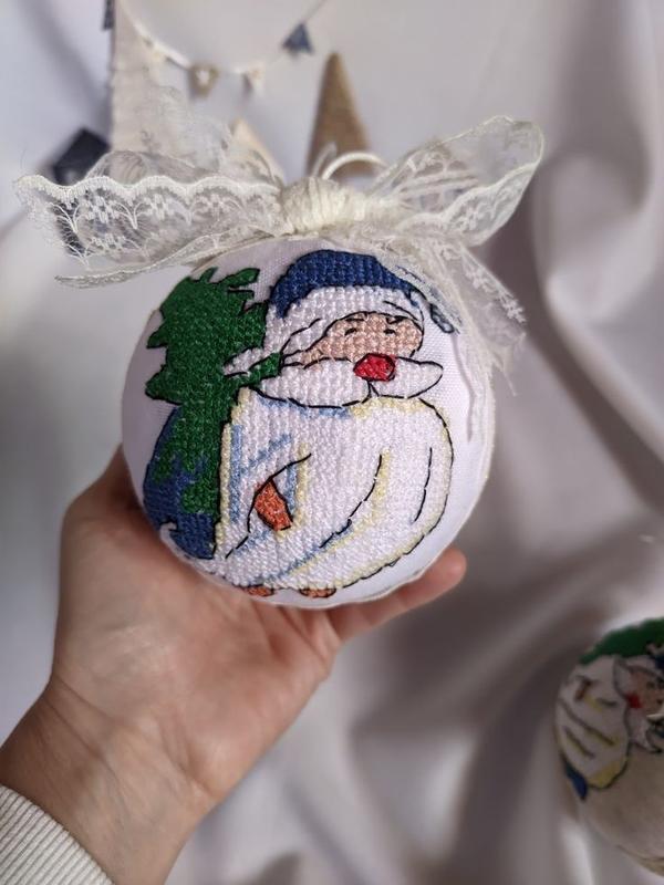 Пуля диаметром 11см, полотно с вышивкой крестиком. Украшена кружевом.