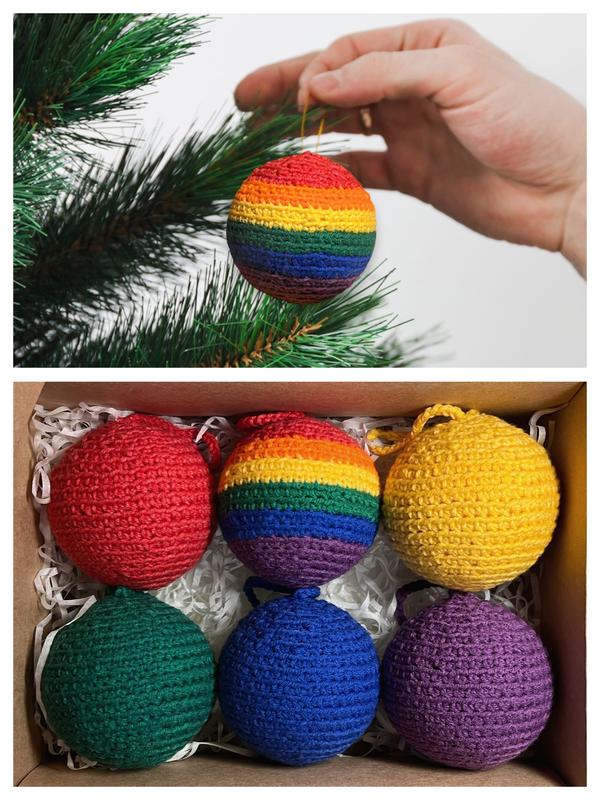 Набор веселых шаров на елку ручной работы. вязаные игрушки, елочные украшения. радуга, лгб...