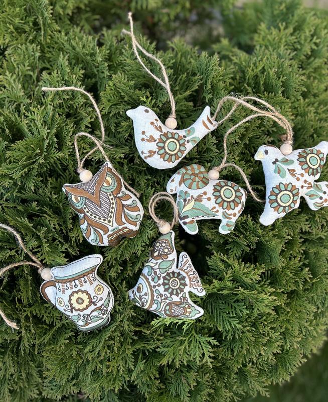 Вишиті іграшки з теплом Карпат. За мотивами косівської кераміки. Гарно підходить для вишуканого подарунку. Безпечно для діток. Також гарно можна задекларувати ялиночку на Різдво та Новий рік. Тканина льон, наповнювач холофайбер, машинна вишивка