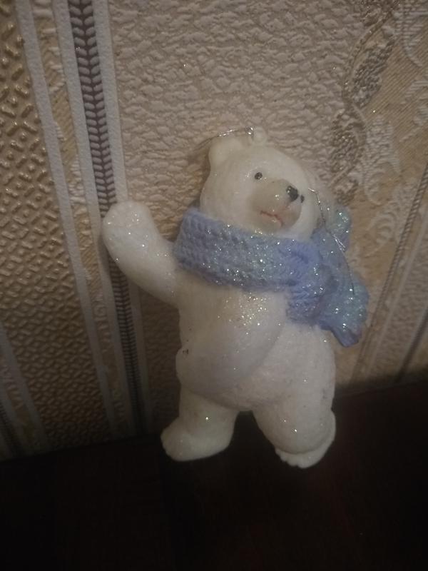 Елочное украшение в виде заснеженного медведя. Высота игрушки 11 см