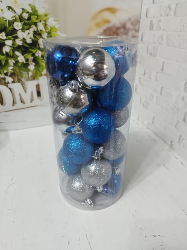 Набір новорічних куль на ялинку rk-9005 пластикових 5 см 24 шт синій з сріблястим