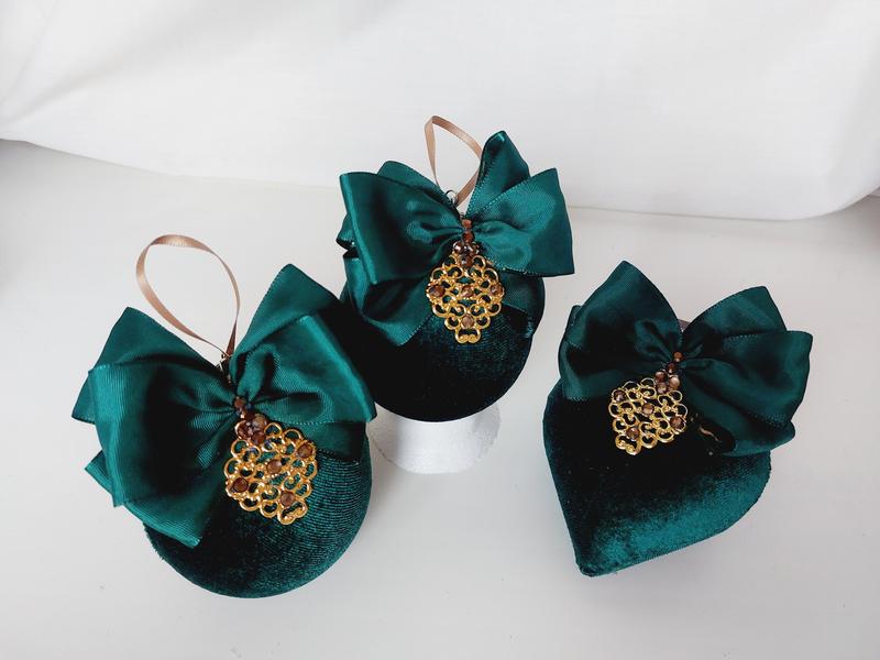 Набор новогодних слоев / куль, украшение на елку ручной работы. изумрудные слои
