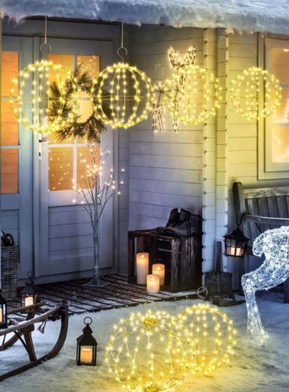 Світлова куля Ø50 см, 272 LED, тепле біле світло, з таймером Створіть чарівну атмосферу вдома чи на вулиці з декоративною світловою кулею! Куля діаметром 50 см оснащена 272 світлодіодами теплого білого кольору, розташованими на 16 струнах (по 17 LED на кожній). Вона випромінює м’яке сяйво, яке ідеально підходить як для святкових декорацій, так і для затишного вечора. Основні характеристики: Діаметр: 50 см Кількість LED: 272 (16 х 17) Колір світла: теплий білий Режим: з таймером (6 годин роботи / 18 годин пауза) Живлення: від мережі Призначення: для використання всередині та зовні (IP-захист) Ідеально підходить для: прикрашання дому, балкона чи саду новорічних і святкових декорацій створення романтичної атмосфери Світлова куля проста в установці, енергоощадна та довговічна завдяки LED-технології....
