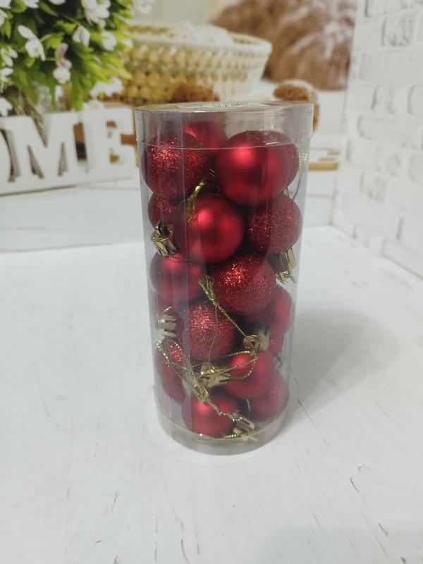 Набор новогодних шаров на елку mk9003-3 пластиковых 3 см 24 шт красный