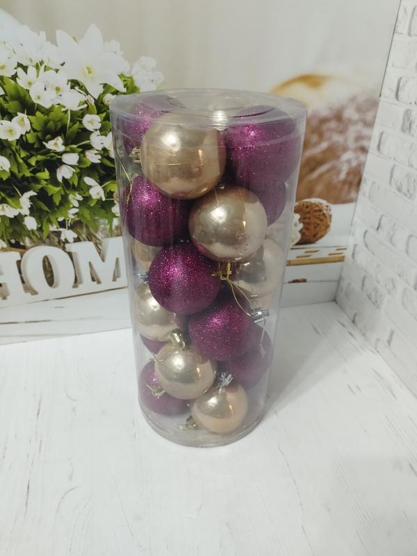 Набор новогодних шаров на елку lk9006-7 пластиковых 6 см 24 шт розовый с золотистым