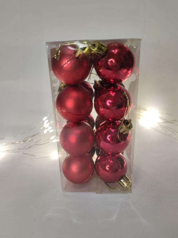 Набор красных шариков В наборе 16 шт Есть глянцевые, матовые и с блестками Материал пластик Диаметр 4 см