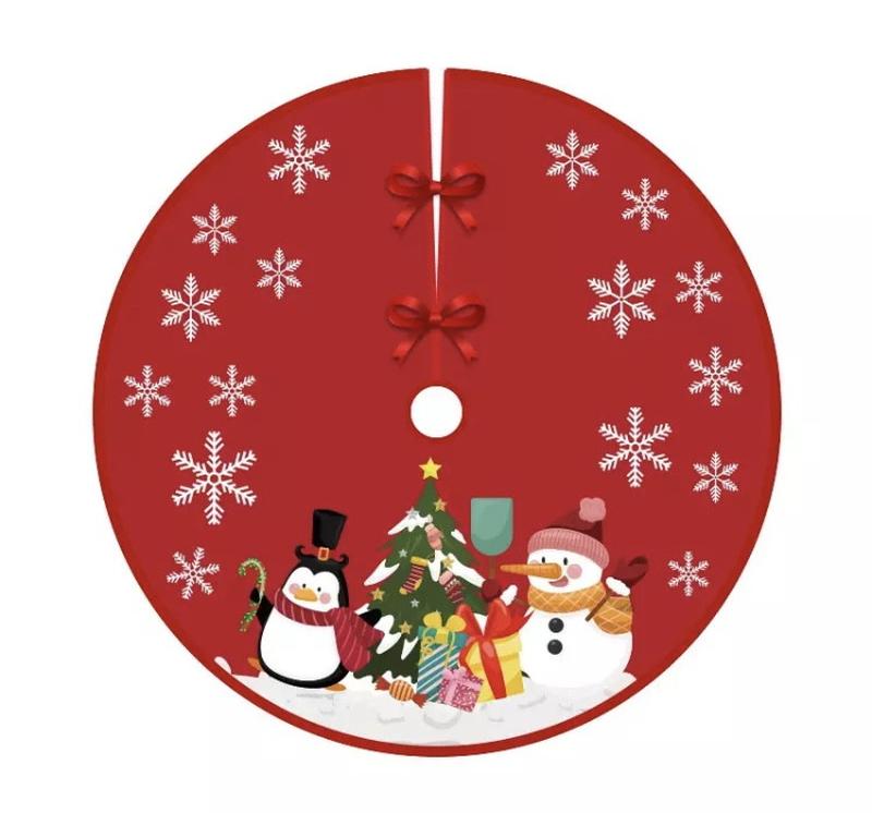 Коврик юбка под елку "пингвин и снеговик" ,д 80см, ткань полиэстер, тонкий, новогодний дек...