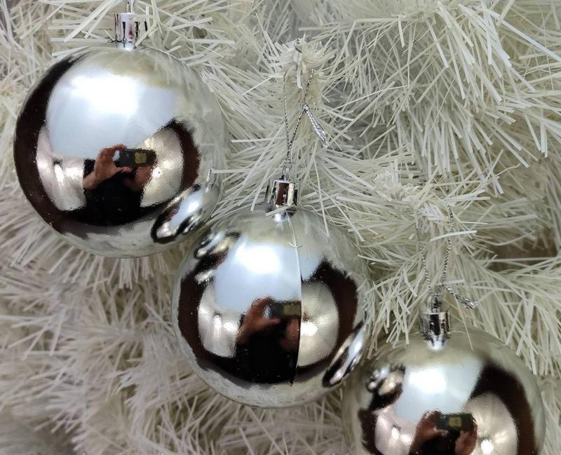 Набір новорічних іграшок, кулі на ялинку, сріблясті глянцеві, матові, з напиленням, в паку...