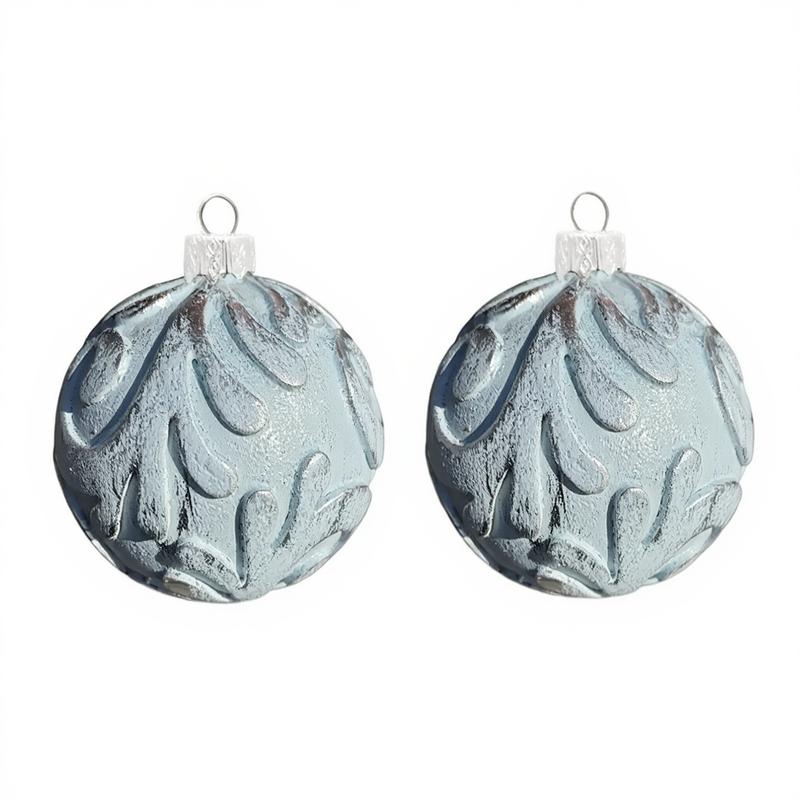 Набор новогодних шаров на елку винтаж 2 (шт) ø8 (см) голубой с серебряной паталью dashuri...