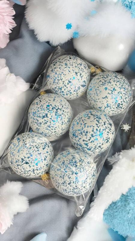 Набор игрушек на елку битое стекло 14652 8 см 6 шт белый с голубым