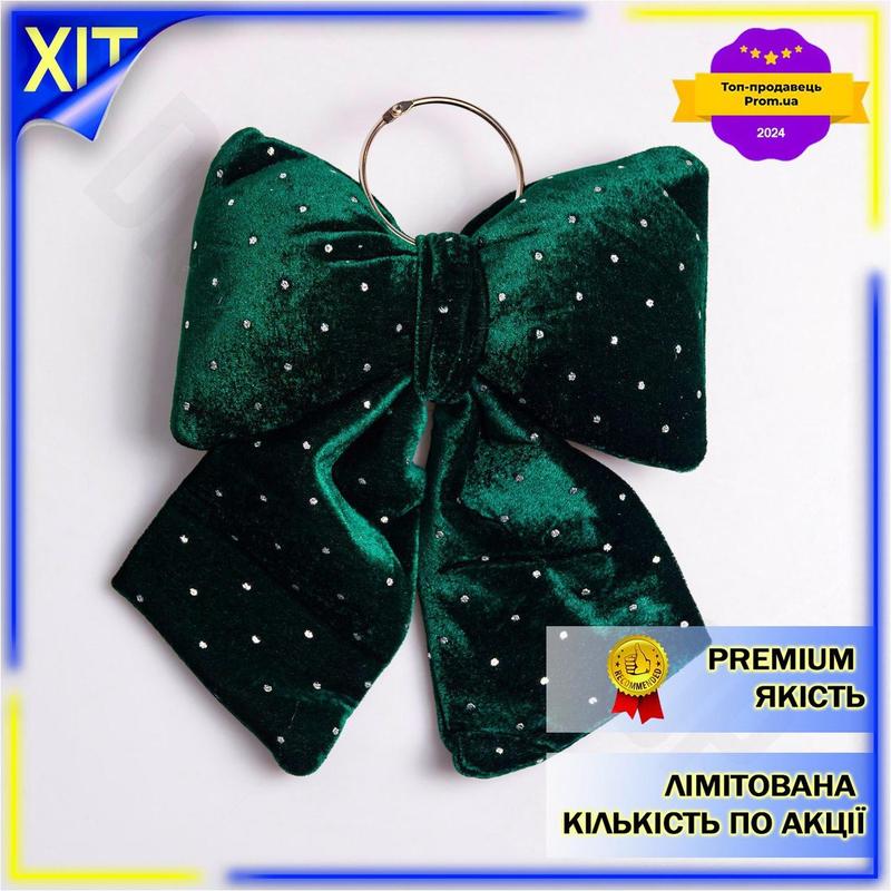 Dm бархатный бант со спецификация 2.2 стразами зеленый 25х35 см для елки декор для праздни...