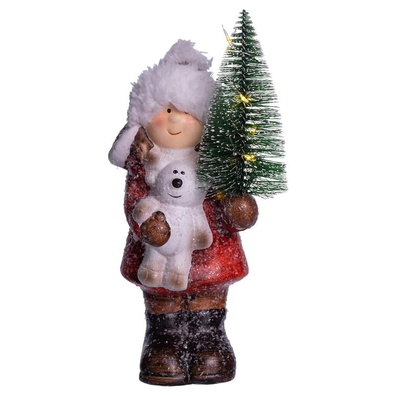 Новогодняя фигурка с подстветкой девочка с елкой из фарфора 8×7×20 (см) новогодний декор д...