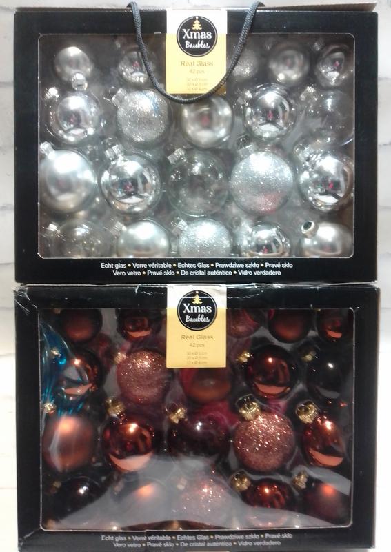 Набір скляних новорічних куль на ялинку від Німецького бренду Livarno Home. Ціна вказана за один набір (упаковку). В наявності 2 кольори:: - сріблясті; - коричневі. - В наборі 44 кульки. - Діаметр кульок: 10 шт.х 6 см. 20 шт.х 5 см 12 шт.х 4 см. - Є стрічка для підвішування. - Матеріал: скло. - Виробник: Німеччина.