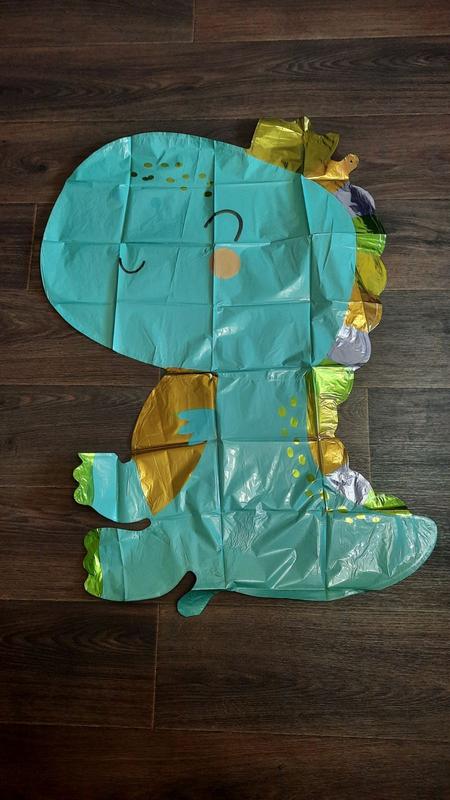 Кулька фольгована Дракончик салатового кольору. Розмір висота 81 × ширина 58 см. Можна надути гелієм, або самостійно за допомогою трубочки, яка входить в набір.