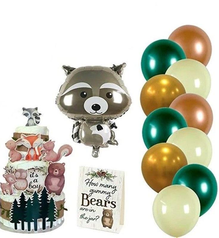 Набор воздушных шариков Енотик В набор входит: Фольгированная фигура Енот (фигурка енота отличается от изображенной на фото, см. фото 2) 73 см × 60 см - 1 шт Латексный воздушный шар зеленый металлик 25 см - 3 шт Латексный воздушный шар золото металлик 25 см - 2 шт Латексный воздушный шар розовое золото 25 см - 2 шт Латексный воздушный шар перламутровый 25 см - 3 шт Клеевые точки 20 шт По желанию отдельно можно приобрести стойку для воздушных шаров в 11 шаров высотой 103 см по 125 грн