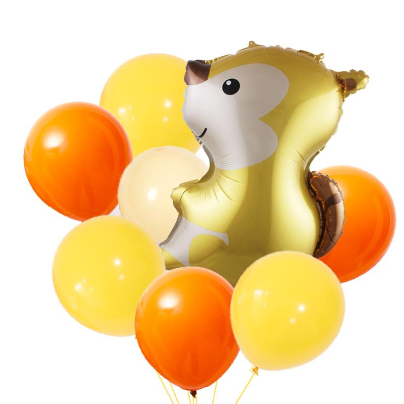 Набір повітряних кульок Білочка До набору входить: Фольгована фігура Білочка 60 см × 46 см - 1 шт Латексна повітряна куля жовта 25 см - 3 шт Латексна повітряна куля помаранчева 25 см - 3 шт Латексна повітряна куля тілесна 25 см - 1 шт Клейові точки 40 шт Стрічка 10 м