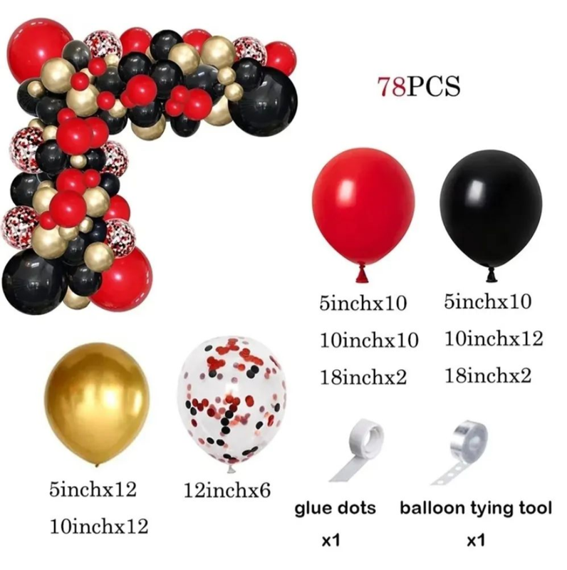 Арка из шариков красный черный золото набор шариков