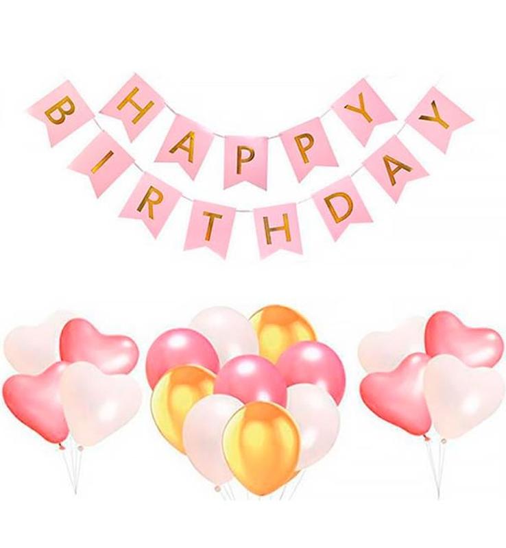 Набор воздушных шариков В набор входит: Бумажная надпись Happy birthday розовый - 1 шт Латексный воздушный шар коралловый сердце макарон 25 см - 4 шт Латексный воздушный шар пудровая сердце макарон 25 см - 4 шт Латексный воздушный шар розовый 25 см - 3 шт Латексный воздушный шар пудровая 25 см - 3 шт Латексный воздушный шар золото хром 25 см - 3 шт Клеевые точки 20 шт Лента 10 м