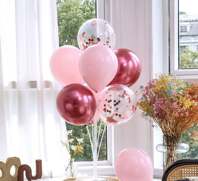 Набор воздушных шариков В набор входит: Стойка на 7 шариков высотой 70 см - 1 шт Куля рожева хром 25 см - 2 шт Куля пудрова 25 см - 4 шт Шар конфетти розовое золото 30 см - 2 шт