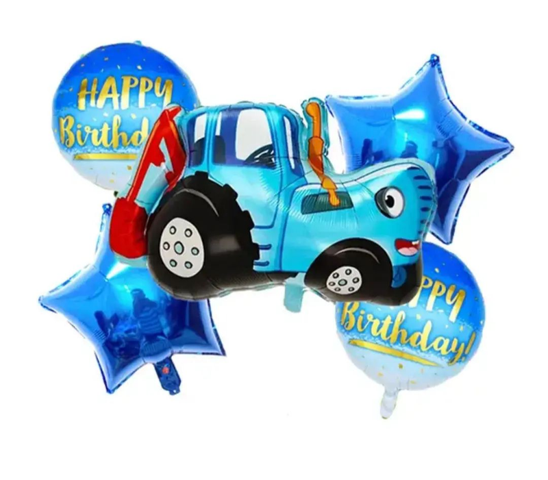 Трактор 81*60 см 2 шт круглые шарики с принтом 45 см 2 шт звезды 45 см