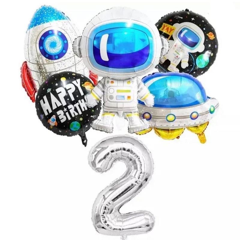 Набор воздушных шариков Космос В набор входит: Фольгированная фигура Космонавт 83 см × 60 см - 1 шт Фольгированная фигура Ракета 75 см × 60 см - 1 шт Фольгированная фигура Летающая тарелка Фольгированная фигура Круглая Космос черная 44 см - 2 шт Фольгированная фигура Цифра (на ваш выбор) серебро 80 см - 1 шт Клеевые точки 20 шт