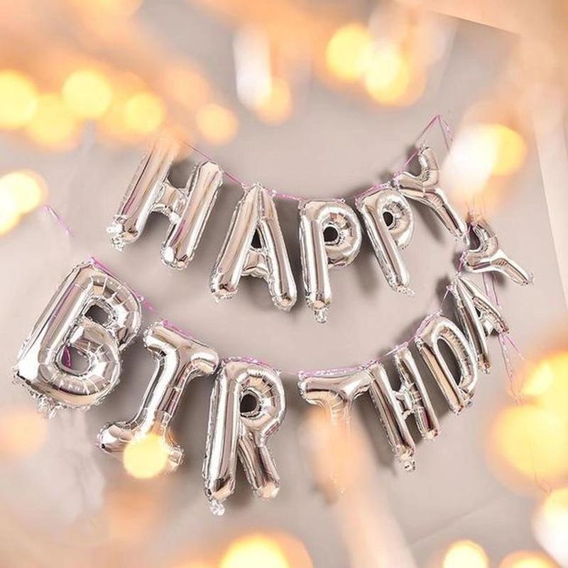 Фольгированный надпись HAPPY BIRTHDAY серебро Выполнено изделие из отдельных шариков в виде букв с клапаном Высота надписи 40 см