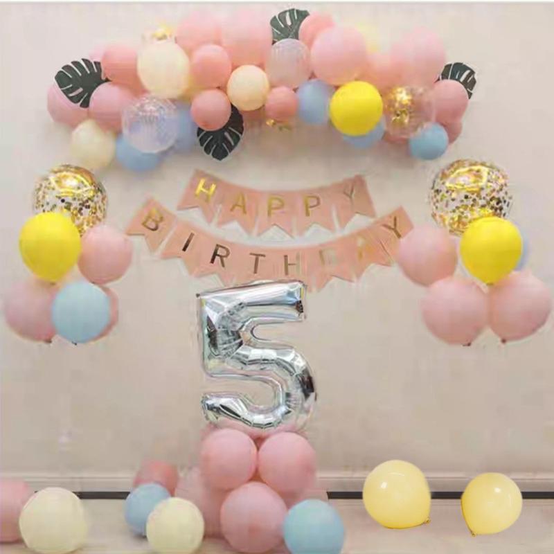 Фотозона Розовое пирожное В набор входит: Латексный воздушный шар розовый 25 см - 40 шт Латексный воздушный шар айвори 25 см - 5 шт Латексный воздушный шар голубая 25 см - 10 шт Латексный воздушный шар желтый 25 см - 10 шт Латексный воздушный шар с золотым конфетти 30 см - 7 шт Бумажная надпись-гирляда Happy Birthday розовая - 1 шт Стойка для воздушных шаров на 7 шаров высотой 70 см - 2 шт Фольгированная фигура Цифра (на ваш выбор) серебро 80 см - 1 шт Пластиковая лента для крепления шариков 2,5 м - 1 шт