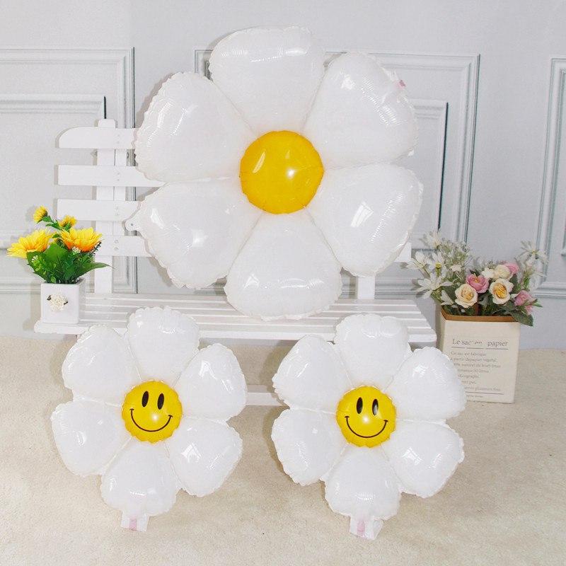Набор воздушных шариков Ромашки на отдыхе В набор входит: Фольгированная фигура Ромашка 70 см х 70 см - 1 шт Фольгированная фигура Ромашка со смайликом 64 см х 64 см - 2 шт Клеевые точки 10 шт Лента 10 м