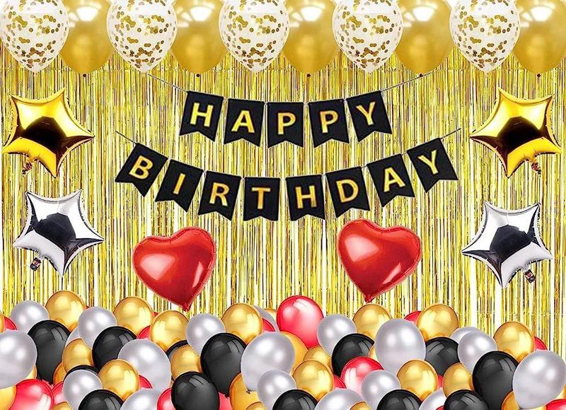 Фотозона Яркие впечатления В набор входит: Шторка-дощик золото 1м × 2м - 1 шт Бумажная гирлянда-надпись Happy birthday черная - 1 шт Фольгированная фигура Сердце красное 45 см × 45 см - 2 шт Фольгированная фигура Звезда золото 45 см × 45 см - 2 шт Фольгированная фигура Звезда серебро 45 см × 45 см - 2 шт Латексный воздушный шар золото хром 25 см - 20 шт Латексный воздушный шар серебро хром 25 см - 15 шт Латексный воздушный шар черный 25 см - 15 шт Латексный воздушный шар красная 25 см - 10 шт Латексный воздушный шар с золотым конфетти 30 см - 5 шт Клеевые точки 100 шт Пластиковая лента для крепления шариков 1 шт