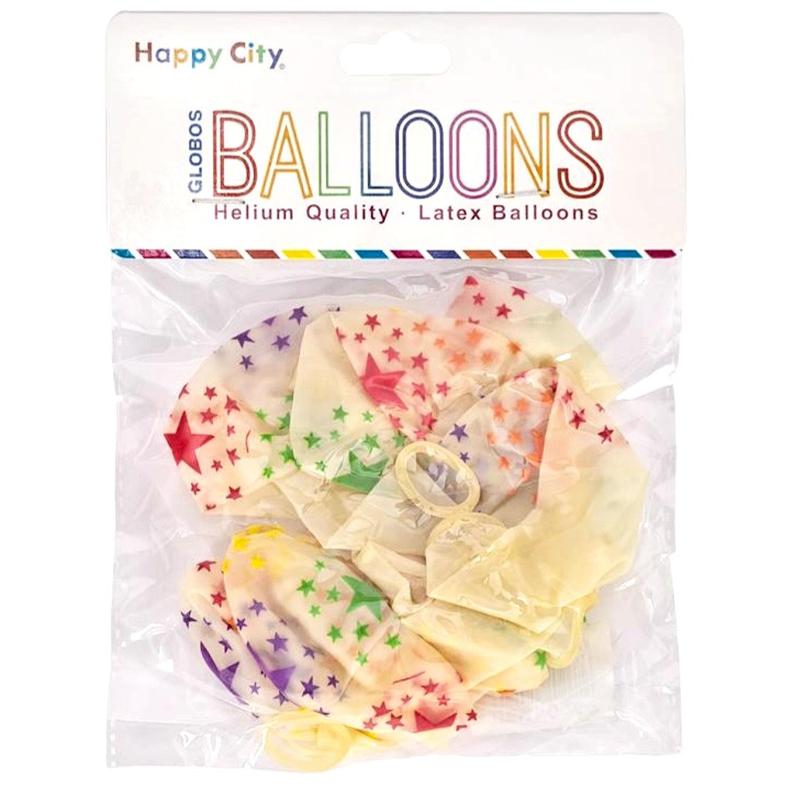 Кулька-зірка у формі круглої латексної кульки Кольори в асортименті. Діаметр куль: 25 см. В пакованні 8 штук повітряних куль Ціна вказана за паковання з 8 куль