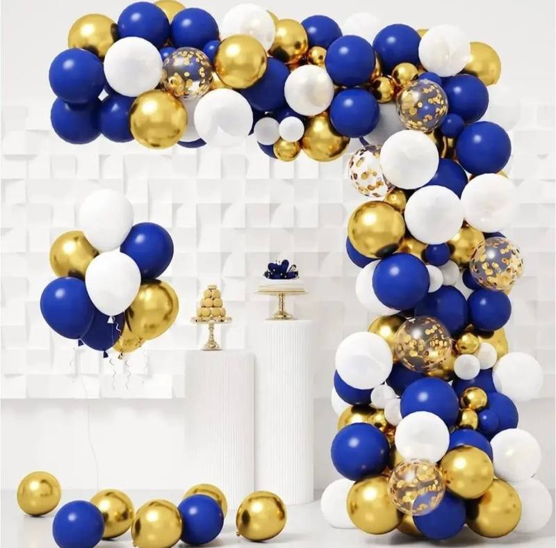 6 шт шарика с конфетти золото 30 см 20 шт кульки хром золото 26 см 10 шт кульки хром золото 13 см 20 шт шарика белые 26 см 30 шт шарика синие 26 см 8 шт шарика белые 13 см 5 шт шарика синие 13 см Пластиковая лента для быстрого монтажа арки Клеевые гель-точки упаковка 100 шт