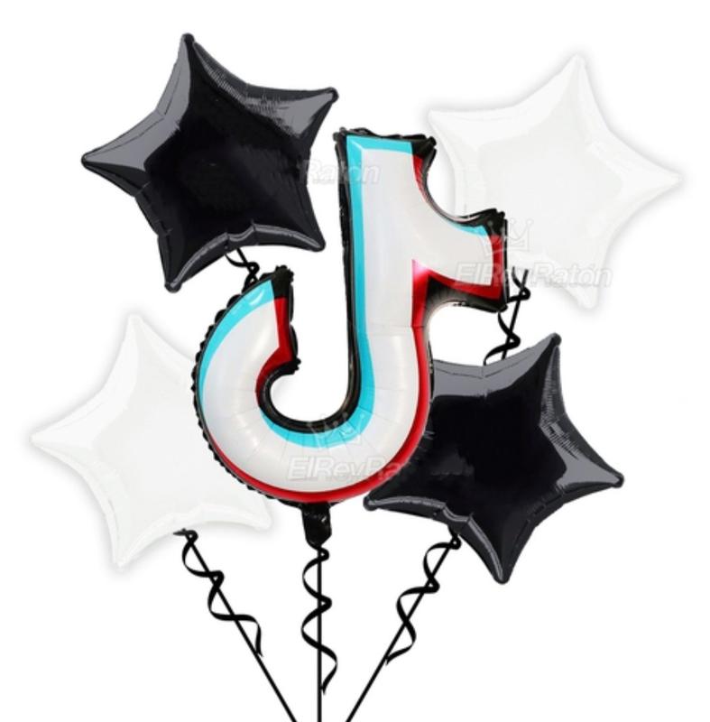 Набор воздушных шариков Тик Ток В набор входит: Фольгированная фигура Нота 70 см × 45 см - 1 шт Фольгированная фигура Звезда белая 45 см - 2 шт Фольгированная фигура Звезда черная 45 см - 2 шт Клеевые точки 20 шт