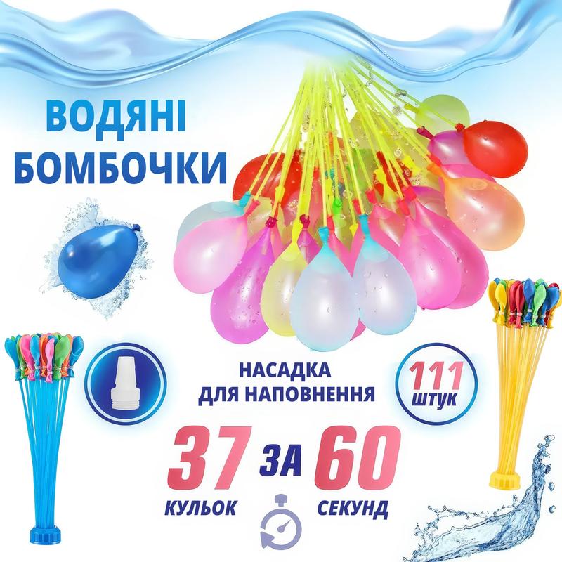 Водяные бомбочки набор из 111 шариков с автоматическим наполнением, разноцветные
