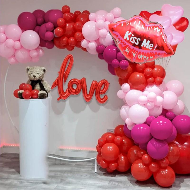 Фотозона Цемчик В набор входит: Фольгированная фигура Губы Kiss me - 1 шт Фольгированная надпись Love красный 54 см × 36 см - 1 шт Фольгированная фигура Сердце розовое 45 см - 2 шт Латексный шар Сердце макарон красное 25 см - 5 шт Латексный шар красная 48 см - 2 шт Латексный шар красная 25 см - 20 шт Латексный шар красная 13 см - 15 шт Латексный шар фуксия 25 см - 20 шт Латексный шар фуксия 13 см - 15 шт Латексна куля рожева 25 см - 20 шт Латексна куля рожева 13 см - 15 шт Пластиковая лента для крепления шариков 5 м - 1 шт Клеевые точки 100 шт