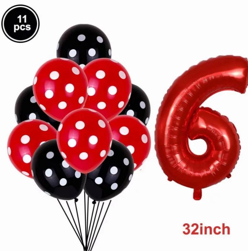 Композиция из шаров леди баг и шарик цифра 6 - в наборе 11штук