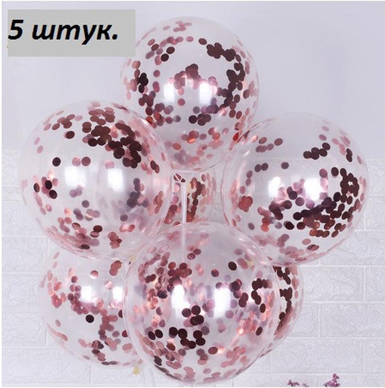 Шарики с конфетти розовое золото - в наборе 5штук