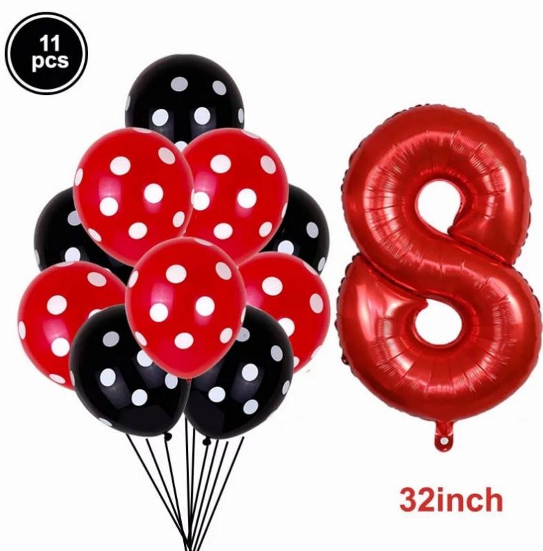 Композиция из шаров леди баг и шарик цифра 8 - в наборе 11штук