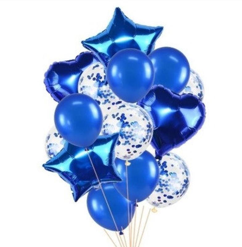 ## Набор воздушных шаров В набор входит: 1. Шары латекс 30 см прозрачные - 5 шт, металлик синие 25 см - 5 шт 2. Конфетти кружочки 23 мм синие - 20 грамм 3. Звезды 45 см синие - 2 шт 4. Сердца 45 см синие - 2 шт Изготовлены из 100% натурального латекса. Высокое качество. Шары яркие, прочные и эластичные. Подойдут для наполнения воздухом или гелием, создания декораций, фотозон и др. Хорошо подходят под воздух и гелий!