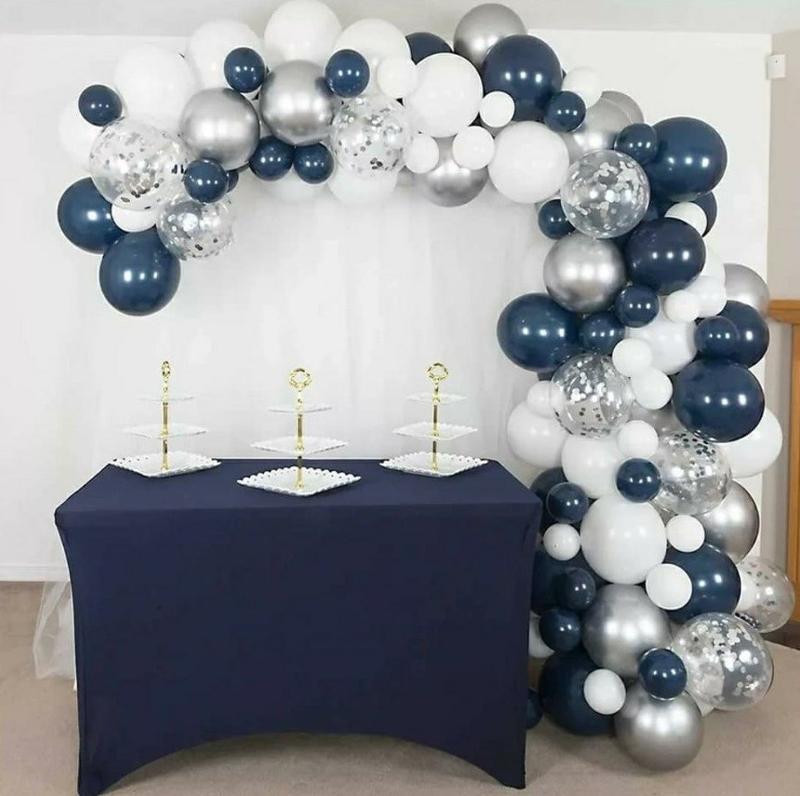 ## Комплект воздушных шаров В комплекте: - Шары латексные 25 см - 40 шт (белые пастель 20 шт, черные пастель 20 шт) - Шары латексные 13 см - 40 шт (белые пастель 20 шт, черные пастель 20 шт) - Шары Хром серебро 25 см 15 шт - Шары с конфетти (серебро) - 8 шт - Клеевые точки (упаковка на 80 шт) - Лента пластиковая для формирования арки (5 метров) Оттенки могут отличаться от тех, что на фото. Цвета шариков можно заменить на другие, имеющиеся в наличии (уточните в комментарии к заказу) .