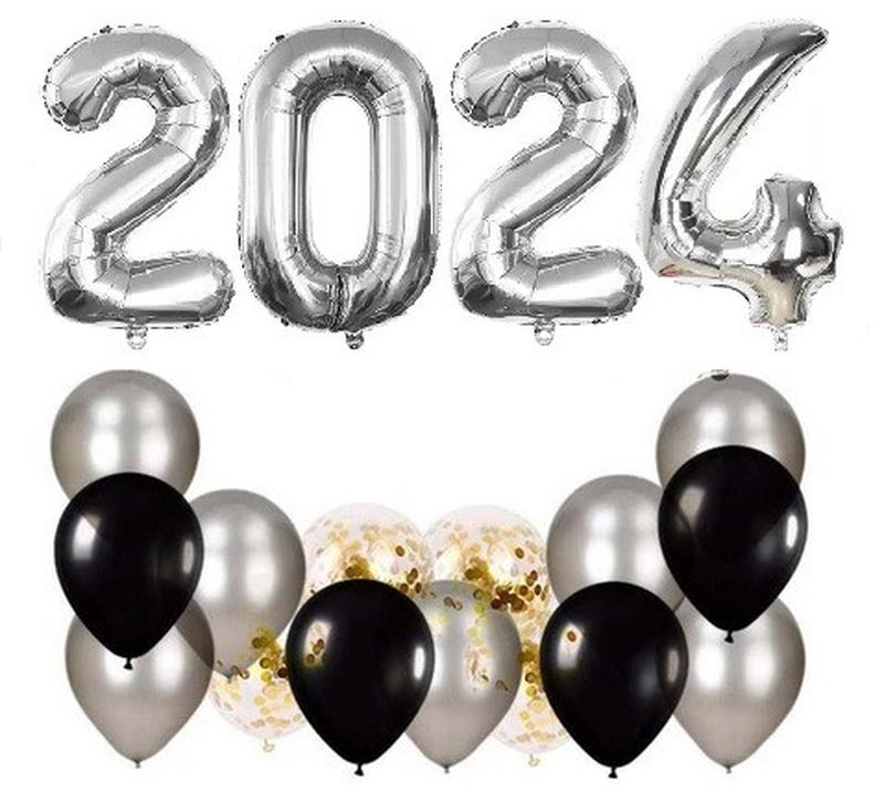 Набор воздушных шариков с цифрами на Новый год. Комплектация: - Шары-цифры фольгированные 4 шт серебро 70 см - Латексные шарики 25 см 15 шт ( 7 шт серебро металлик, 4 шт пастель черный, 4 шт прозрачные ) - Конфетти кружочки золото 23 мм - 15 грамм Цифры надуваются только воздухом, латексные шарики подходят под гелий и под воздух. Любой цвет шаров можно заменить на другой, имеющийся в наличии! Пожелания указывайте в комментарии к заказу!