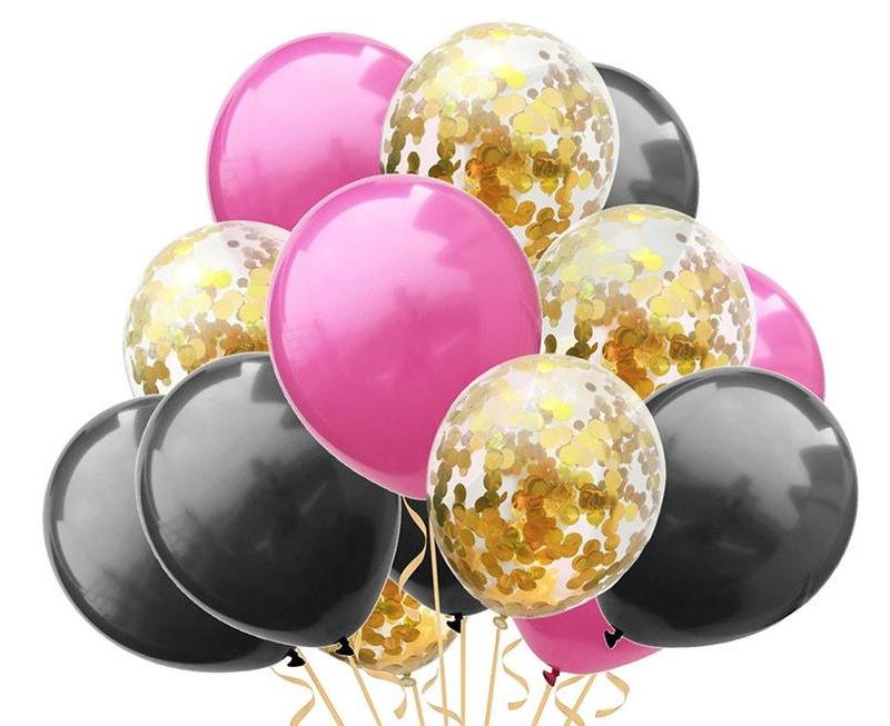 Комплектация: - Латексные шарики 30 см - 5 шт прозрачные кристалл + 20 грамм конфетти золото (23 мм кружочки) - Латексные шарики 30 см - 5 шт фуксия пастель - Латексные шарики 30 см - 5 шт черные пастель Шарики подходят под воздух и гелий. Любой цвет шаров можно заменить на другой, имеющийся в наличии! Пожелания указывайте в комментарии к заказу!