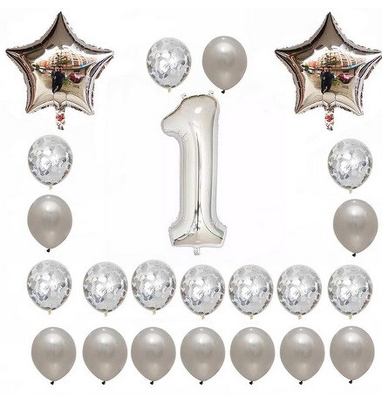 Комплектация: - Фольгированная цифра 70см серебро (любая на Ваш выбор) - Звезда 45 см 2 шт серебро - Латексные шарики 30 см 10 шт серебро - Латексные шарики 30 см 10 шт прозрачные с конфетти серебро Буквы можно надувать только воздухом, остальные шары подходят под воздух и гелий. Любой цвет шаров можно заменить на другой, имеющийся в наличии! Пожелания указывайте в комментарии к заказу!