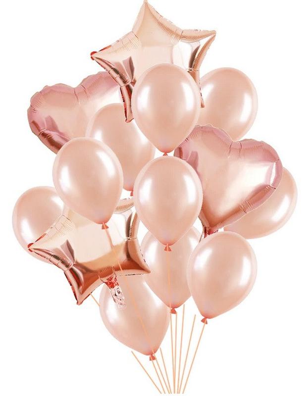 Комплектация: - Фольгированный шар звезда 45 см - 2 шт розовое золото - Фольгированный шар сердце 45 см - 2 шт розовое золото - Латексные шарики 25 см - 10 шт розовое золото металлик Шарики подходят под воздух и гелий. Любой цвет шаров можно заменить на другой, имеющийся в наличии! Пожелания указывайте в комментарии к заказу!