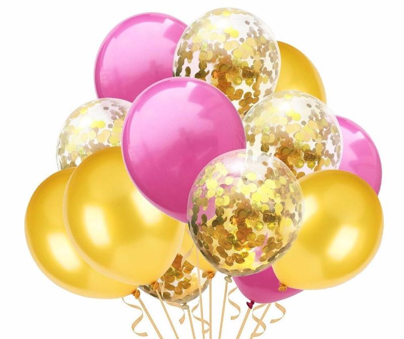 Комплектация: - Латексные шарики 30 см - 5 шт прозрачные кристалл + 20 грамм конфетти золото (23 мм кружочки) - Латексные шарики 30 см - 5 шт фуксия пастель - Латексные шарики 30 см - 5 шт золото металлик Шарики подходят под воздух и гелий. Любой цвет шаров можно заменить на другой, имеющийся в наличии! Пожелания указывайте в комментарии к заказу!