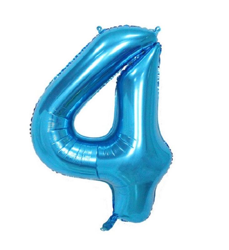 Фольгированный шар цифра "4" ГОЛУБАЯ размером 70 см. Можно надувать воздухом